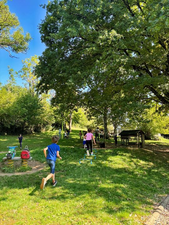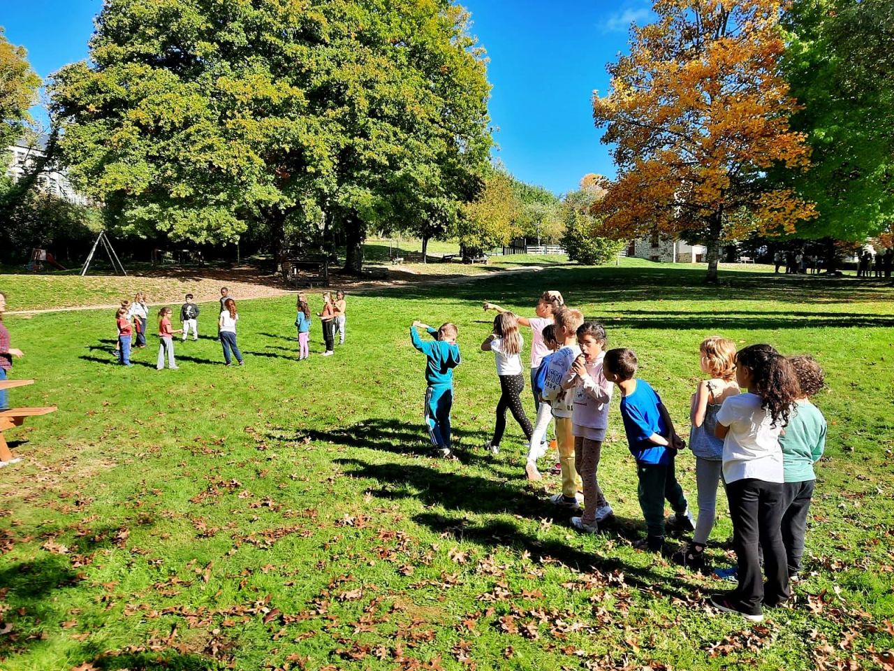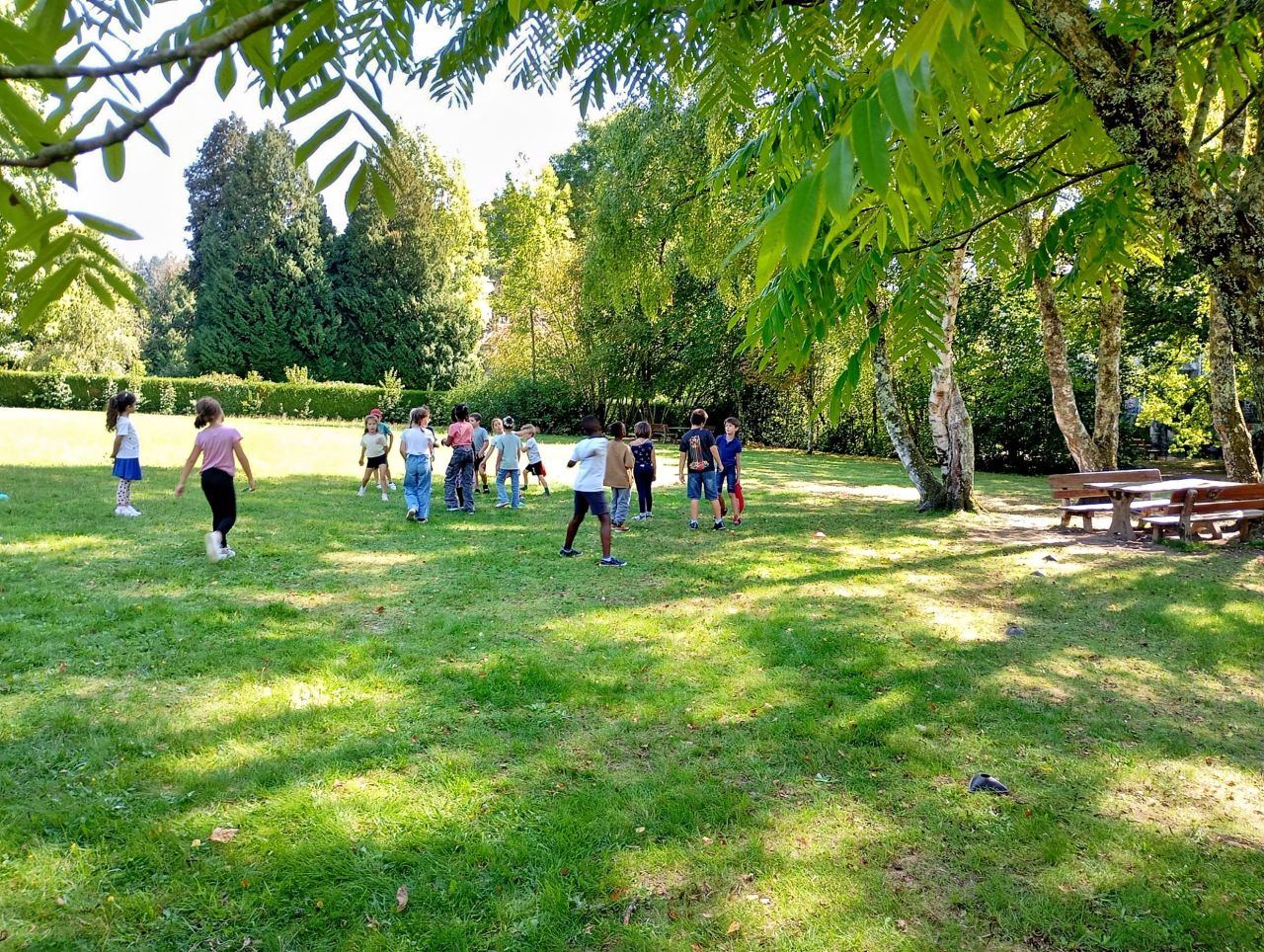 Avec ce temps magnifique, les classes de CP, CP-CE1 et CE1-CE2 sont allés au Pré Lanaud pour une séance d' EPS : parcours en nature, jeux de relais et jeux de collaboration.