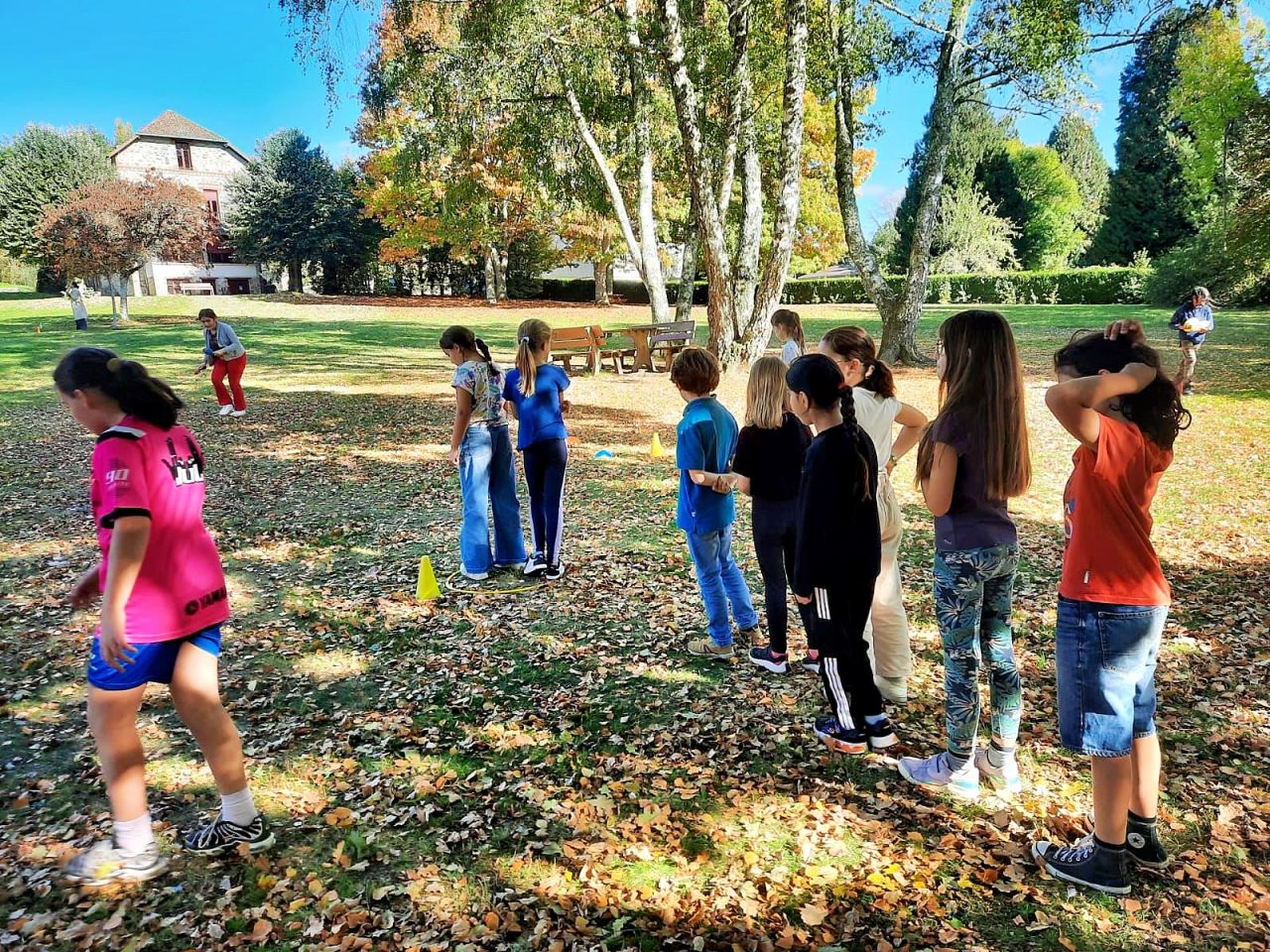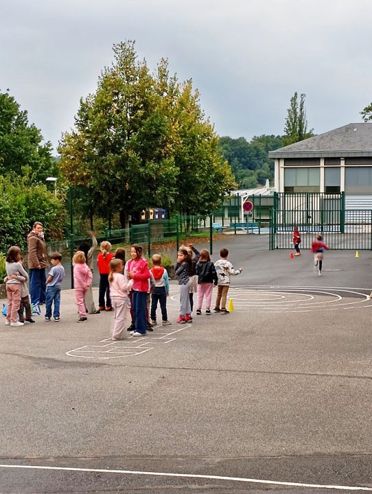 Tous les élèves de l'école se sont retrouvés au Pré Lanaud pour des ateliers sportifs variés : jeux collectifs, relais de vitesse et de précision, jeux de lancés....